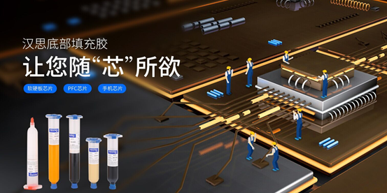 漢思旗下全系列產品通過多年應用認證,質量過硬。其中,底部填充膠優勢明顯,抗沖擊、耐腐蝕,通過創新型毛細作用在CSP和BGA芯片的底部進行填充,經加熱固化后形成牢固的填充層,能有效降低由于硅芯片與基板之間的總體溫度膨脹特性不匹配或外力造成的沖擊,提高汽車電子元器件結構強度和的可靠性,為產品的跌落、扭曲、振動、濕氣等提供良好的保護。