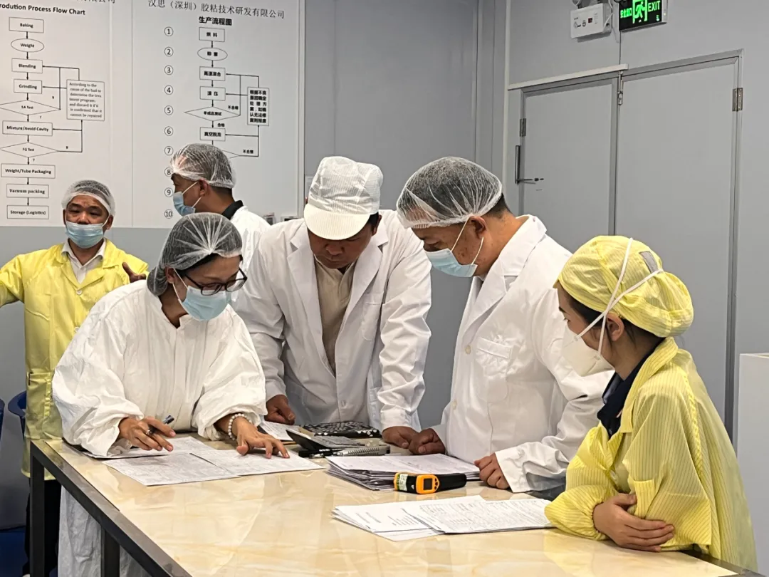 會后,李偉先生協技術團隊帶領深科技領導一行前往生產工廠參觀。在李偉先生介紹下了解車間在生產時所需的原料控制、生產環境控制、生產過程控制及產品質量控制和產品質量追溯的管理。