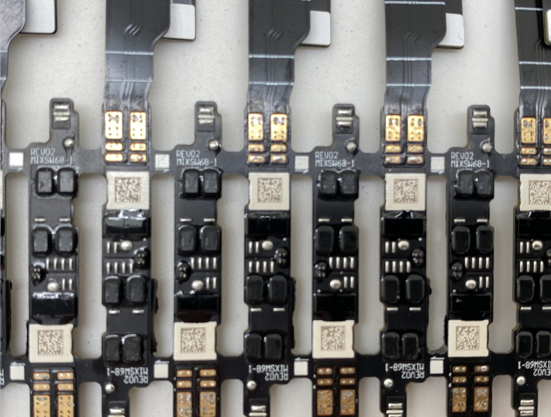 MOS管左邊有測試點,右邊有二維碼, 要求膠水流動性好、填充力高、膠水不能溢到旁邊的測試點和二維碼。