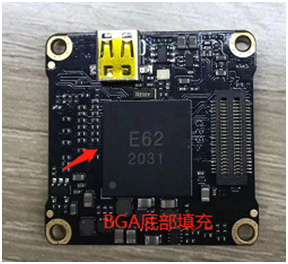 1,將芯片牢固的粘接到PCB上,具有較強的抗震動能力、抗撞擊、抗跌落等機械應力,避免芯片錫球與PCB板脫焊而造成功能不良,提高產品的可靠性.